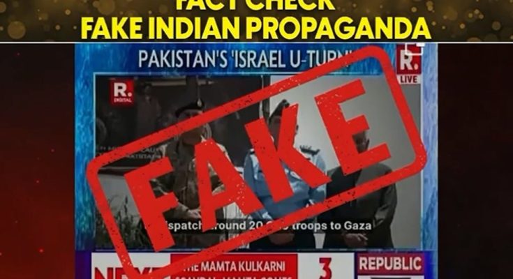 ریپبلک ٹی وی نے جھوٹا دعویٰ کیا کہ پاکستان مغربی ممالک اور اسرائیل کی نگرانی میں 20 ہزار فوجی غزہ بھیجنے کی تیاری کر رہا ہے۔