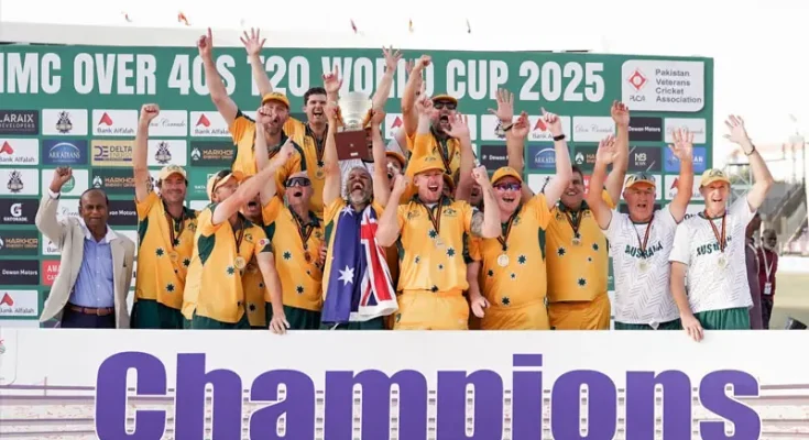 آسٹریلیا نے پیر کو نیشنل کرکٹ اسٹیڈیم میں کھیلے گئے فائنل میں پاکستان کو 7 وکٹوں سے شکست دے کر آئی ایم سی اوور 40 ٹی ٹوئنٹی کرکٹ ورلڈ کپ 2025 کا ٹائٹل اپنے نام کر لیا۔