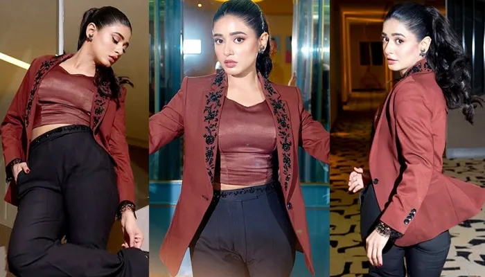 حال ہی میں سحر خان نے اپنی چند نئی تصاویر انسٹاگرام پر شیئر کیں جس میں انہوں نے ویسٹرن اسٹائل کا لباس زیبِ تن کیا ہوا تھا، جس میں بلیک پلازو پینٹس، براؤن ٹاپ اور براؤن بلیزر شامل تھا۔