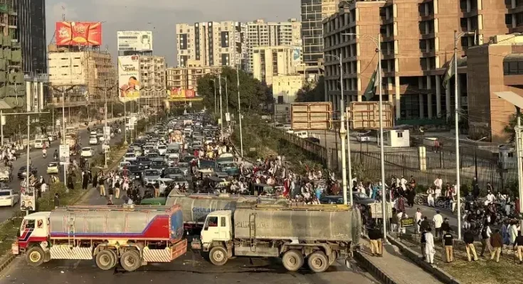 پولیس نے اتوار کو ریلی کے شرکا کو ریڈ زون کی طرف شاہراہ فیصل کے راستے جانے سے روکنے کے لیے آنسو گیس فائر کی اور 45 افراد کو حراست میں لیا تھا، جن میں سے 12 کو بعد میں رہا کر دیا گیا تھا۔