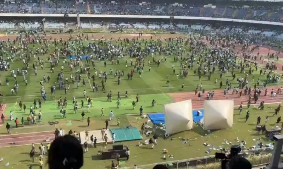 شائقین بہت بڑی تعداد میں ان کی ایک جھلک دیکھنے کے لئے اسٹڈیم میں موجود تھے۔ میسی کے چلے جانے پر وہ آپے سے باہر ہوگئے اور اسٹڈیم پر دھاوا بول دیا۔