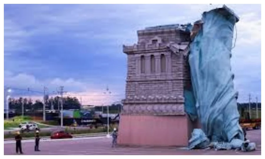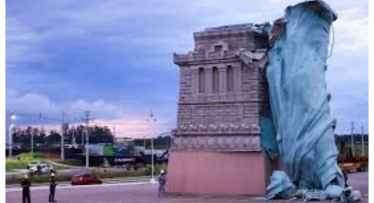 Statue of Liberty collapses due to strong winds in Guaíba, Brazil.