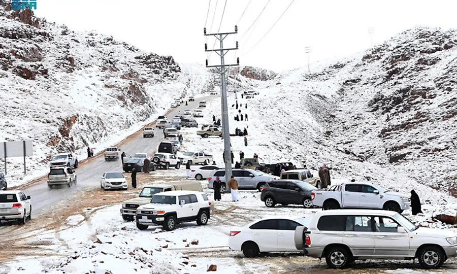 سعودی عرب میں موسم نے اچانک کروٹ لے لی جہاں مملکت کے کئی حصے شدید بارشوں کی لپیٹ میں ہیں، وہیں تبوک ریجن کے اللوز پہاڑی سلسلے میں موسمِ سرما کی پہلی برفباری نے سب کو حیران کر دیا۔