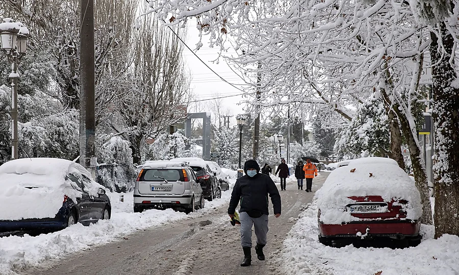 ایتھنز سے باہر واقع سیاحتی مقام پارنسوس کے بلند علاقوں میں برف کی موٹی تہہ جم چکی ہے جبکہ درجہ حرارت منفی سطح تک گر گیا ہے۔
