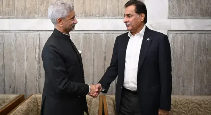 ڈھاکا میں بھارتی وزیر خارجہ جے شنکر کا اسپیکر قومی اسمبلی سردار ایاز صادق سے مصافحہ، جے شنکر خود چل کر اسپیکر سردار ایاز صادق کے پاس آئے اور ہاتھ ملایا۔
