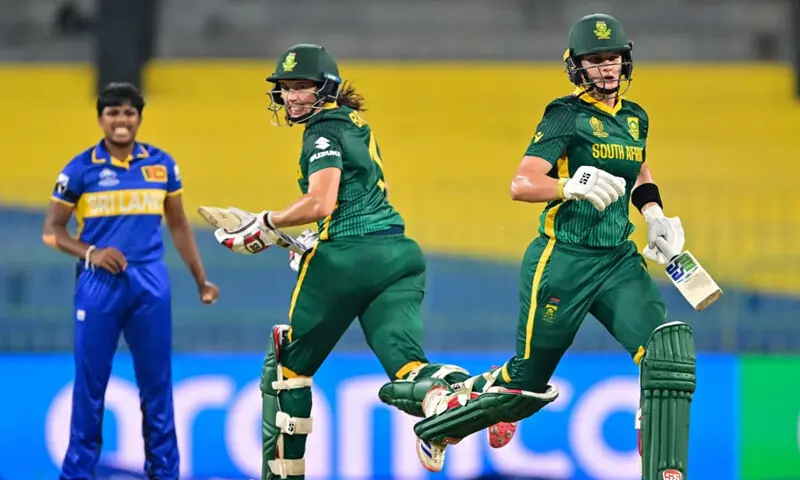 جنوبی افریقہ نے سری لنکا کی جانب سے دیے گئے 106 رنز کے ہدف کو 15ویں اوور میں ہی بغیر کسی وکٹ کے نقصان پر حاصل کر لیا، پروٹیز کپتان لورا وولوراڈٹ 60 اور تیزمین برٹس 55 رنز بنا کر ناؤٹ آؤٹ رہیں۔